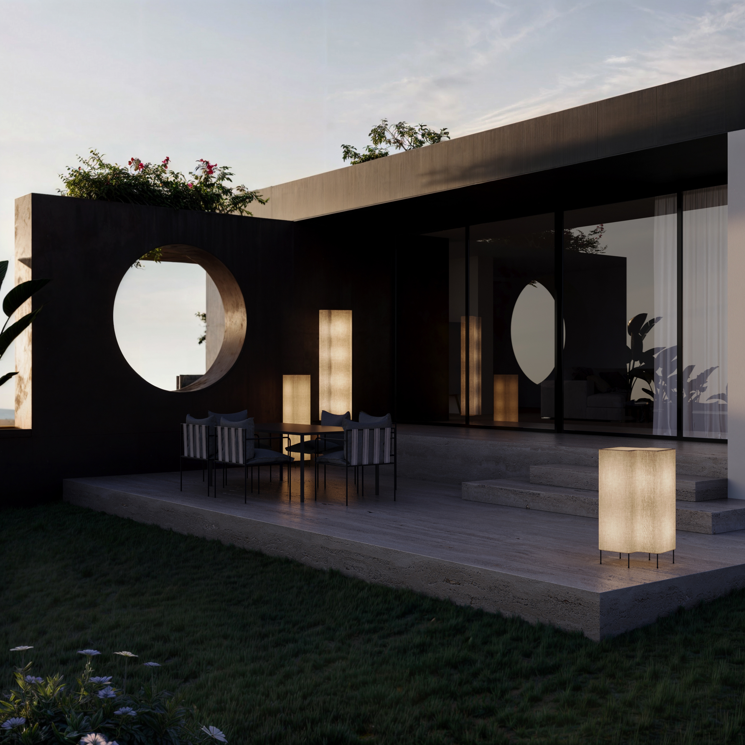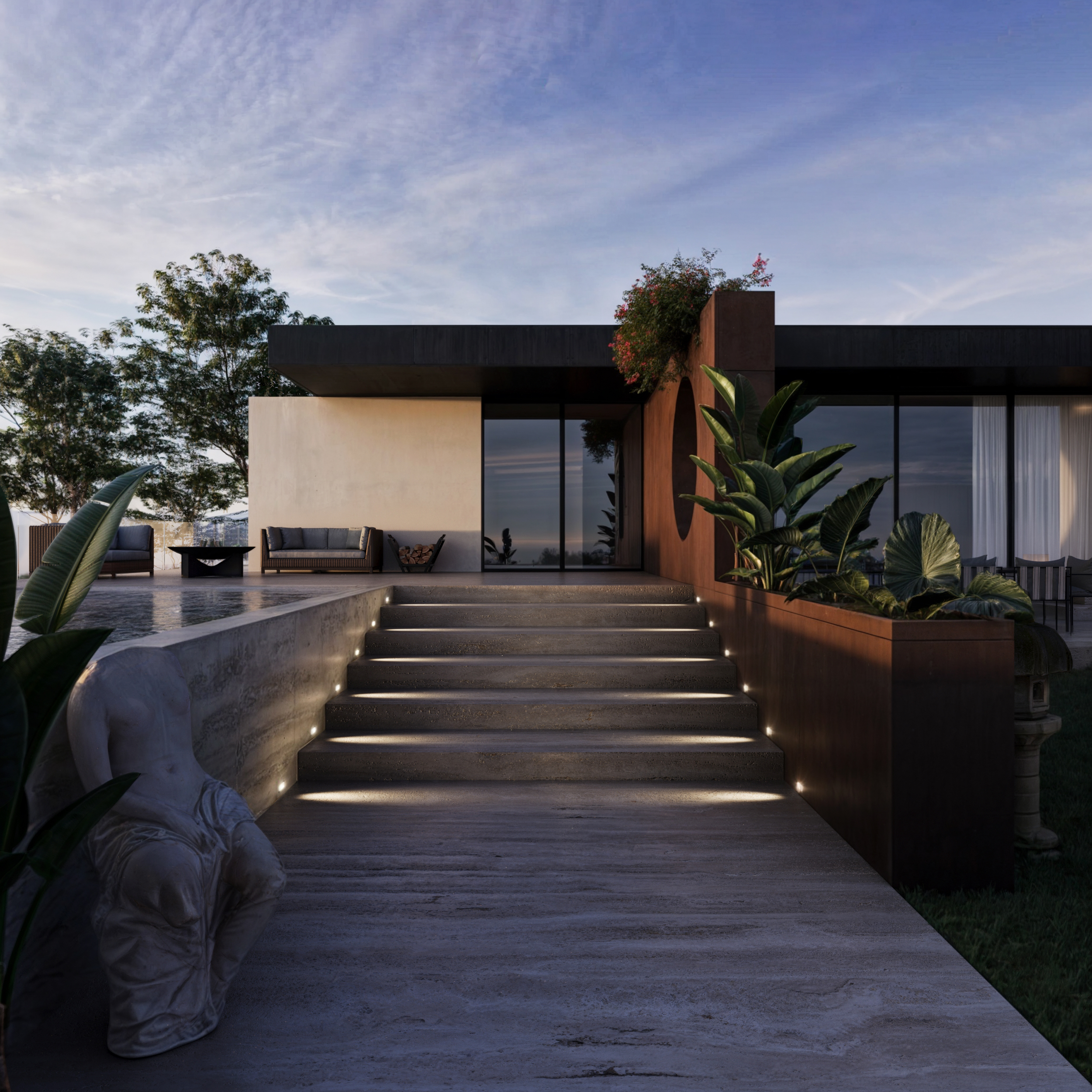 Vista esterna di una villa lusso con piscina.