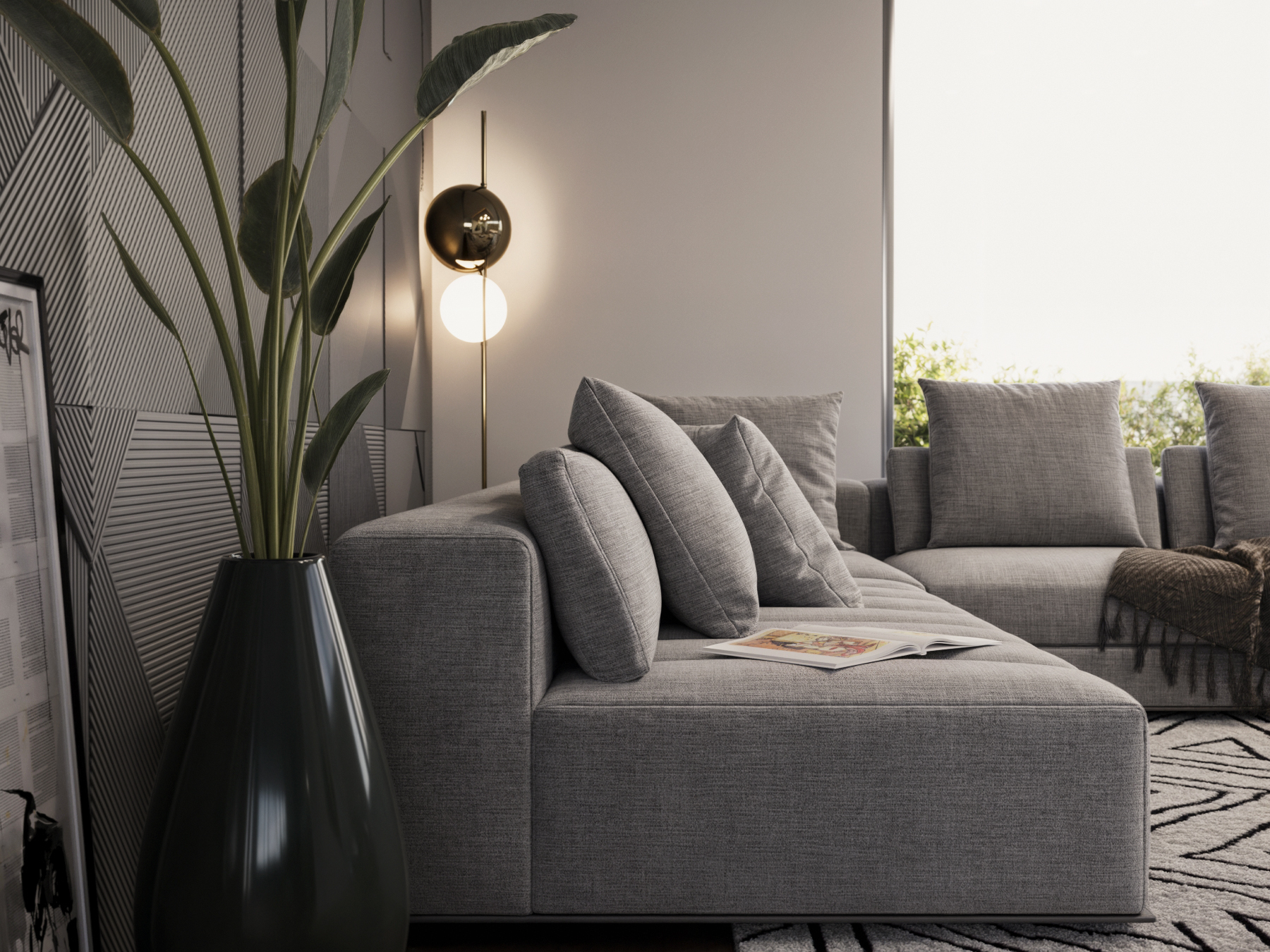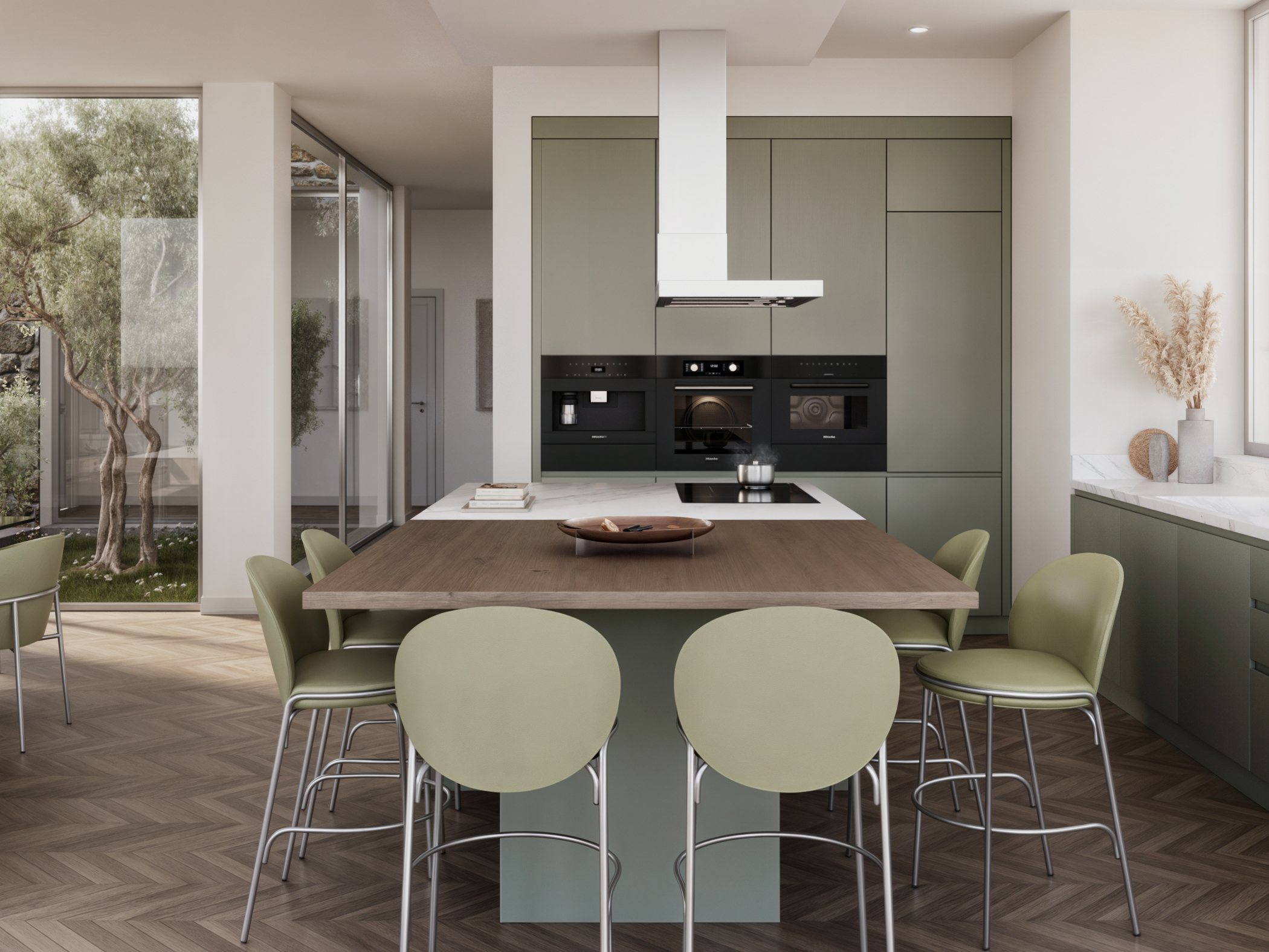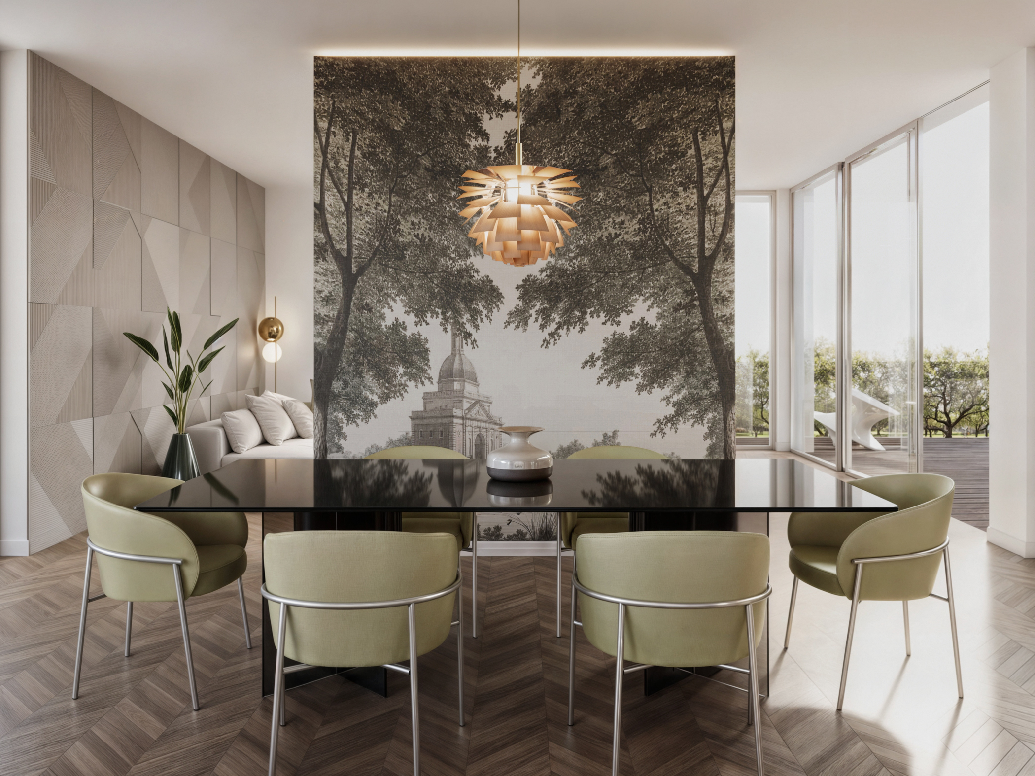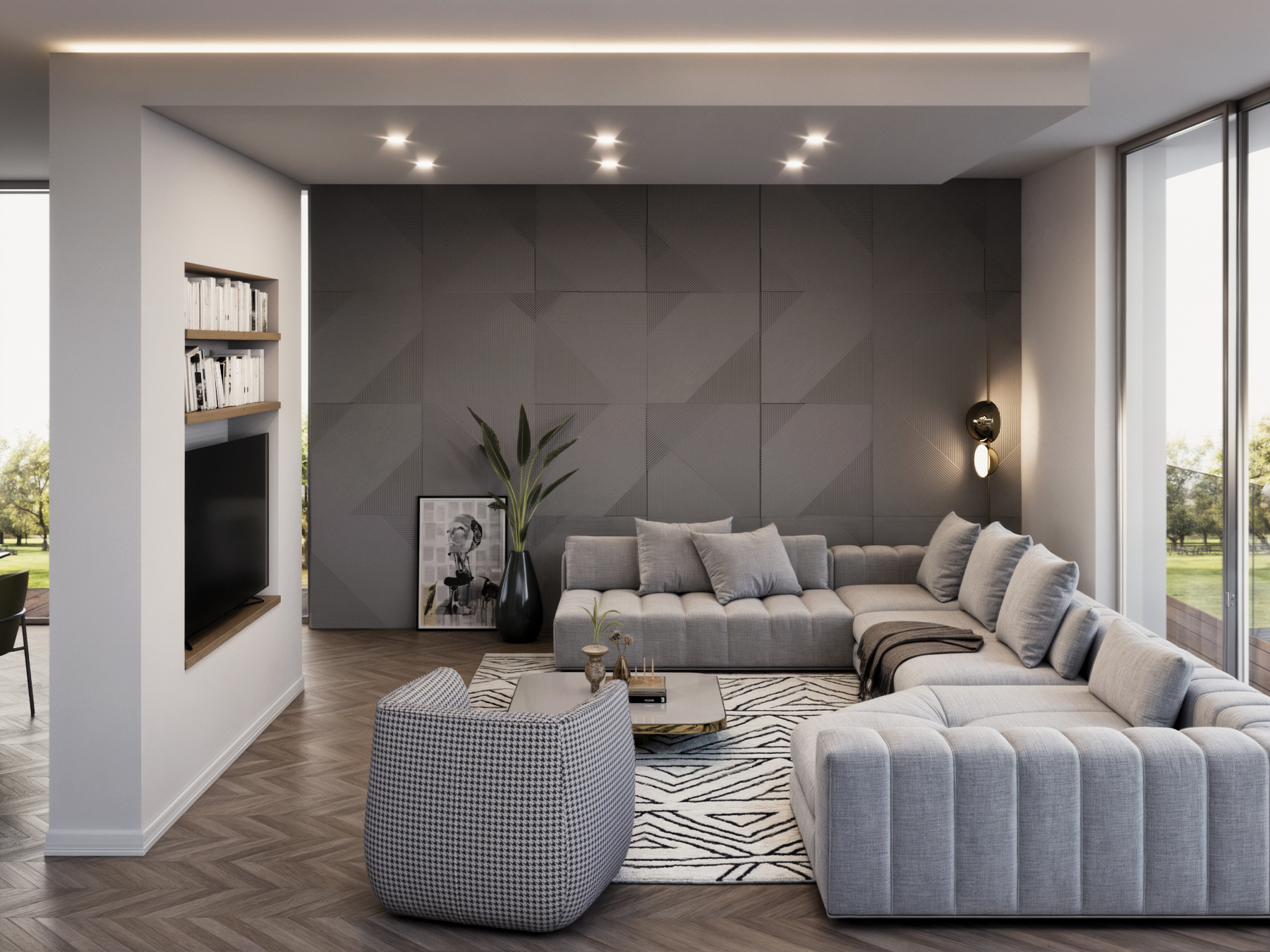 Zona giorno di una villa strutturata intorno ad un patio.